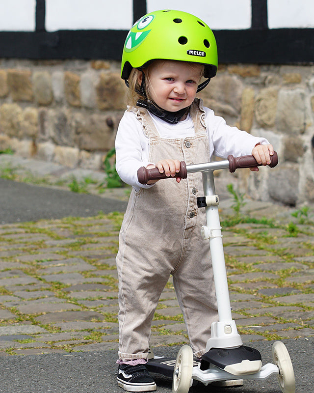 That's why Melon skate and bike helmets offer the highest safety standards and full certification. Nevertheless, Melon Urban Active helmets are approximately 30% lighter than competitor products. This increases wearing comfort and distributes the impact load in the event of a fall. Each helmet can be precisely adjusted to the individual head circumference to guarantee a secure fit. These safety and comfort features are also fulfilled by the helmets for our youngest riders. Our toddler helmets protect your child's head perfectly. An additional LED light on the back of the helmet ensures good visibility in traffic.